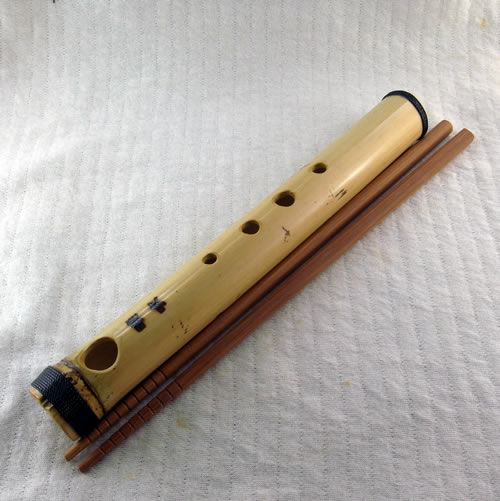 【ご使用方法】この商品は、携帯マイ箸入れとしてだけではなく、竹笛として演奏もお楽しみ頂けます。リコーダーとは違って、横笛ですので、簡単には音は出ませんが、ビールビンやペットボトルの口に息を当てて音を出す要領で、笛の外と中に半々に息を吹き込みますと、音が出ます。集中して30分も練習すれば、音が出ます。さらに、唇の形が定まるにつれて、音色も締った艶のある音に変わって行きます。 詳しい息の吹き込み方や、笛の構え方、楽譜は、商品と同梱されている説明書に記載しております。